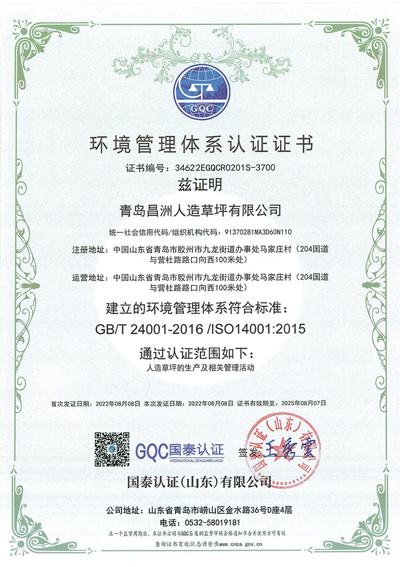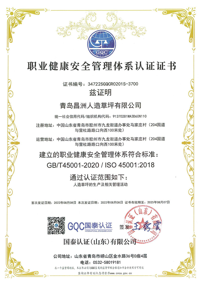 公司作为青岛市质量协会团体标准起草单位,与各界同仁致力于把人造草坪做到规范化、绿色化、科技化。