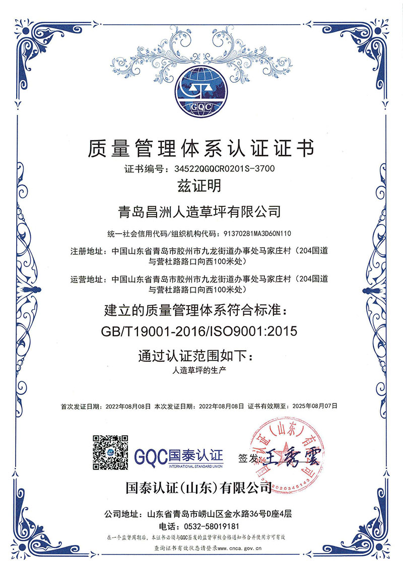 青岛昌洲人造草坪有限公司,专注于人造草坪的生产和国内销售2005年
